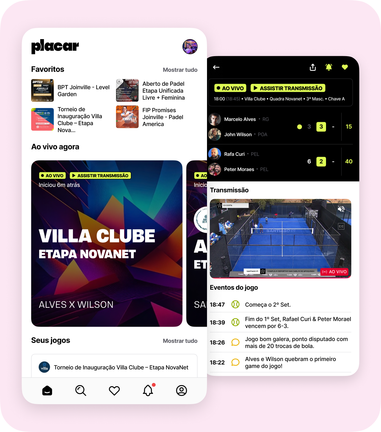 Com o app instalado no seu celular, você descobre novos torneios e acompanha tudo em tempo real: jogos, horários, chaves e resultados.